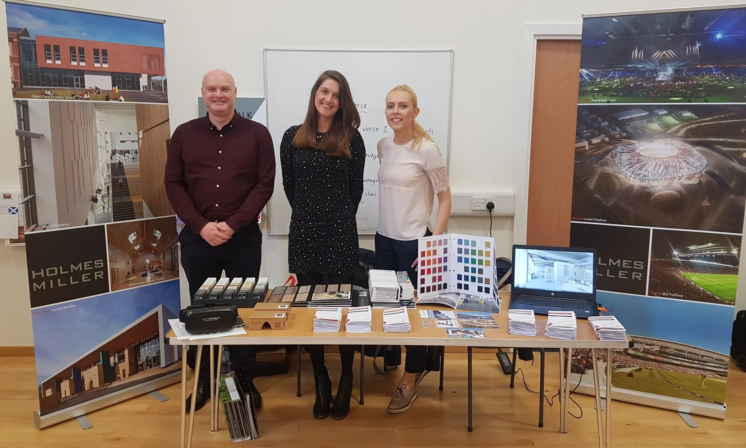 Holmes Miller was out in force today to support the hub West Scotland Careers Event at Turnbull High School in Bishopbriggs. Rhiannon, Lina and James were providing valuable career advice and insight in the varying aspects of our work at Holmes Miller, including Architectural Services, Interior Design and Computer Generated Visualisation.