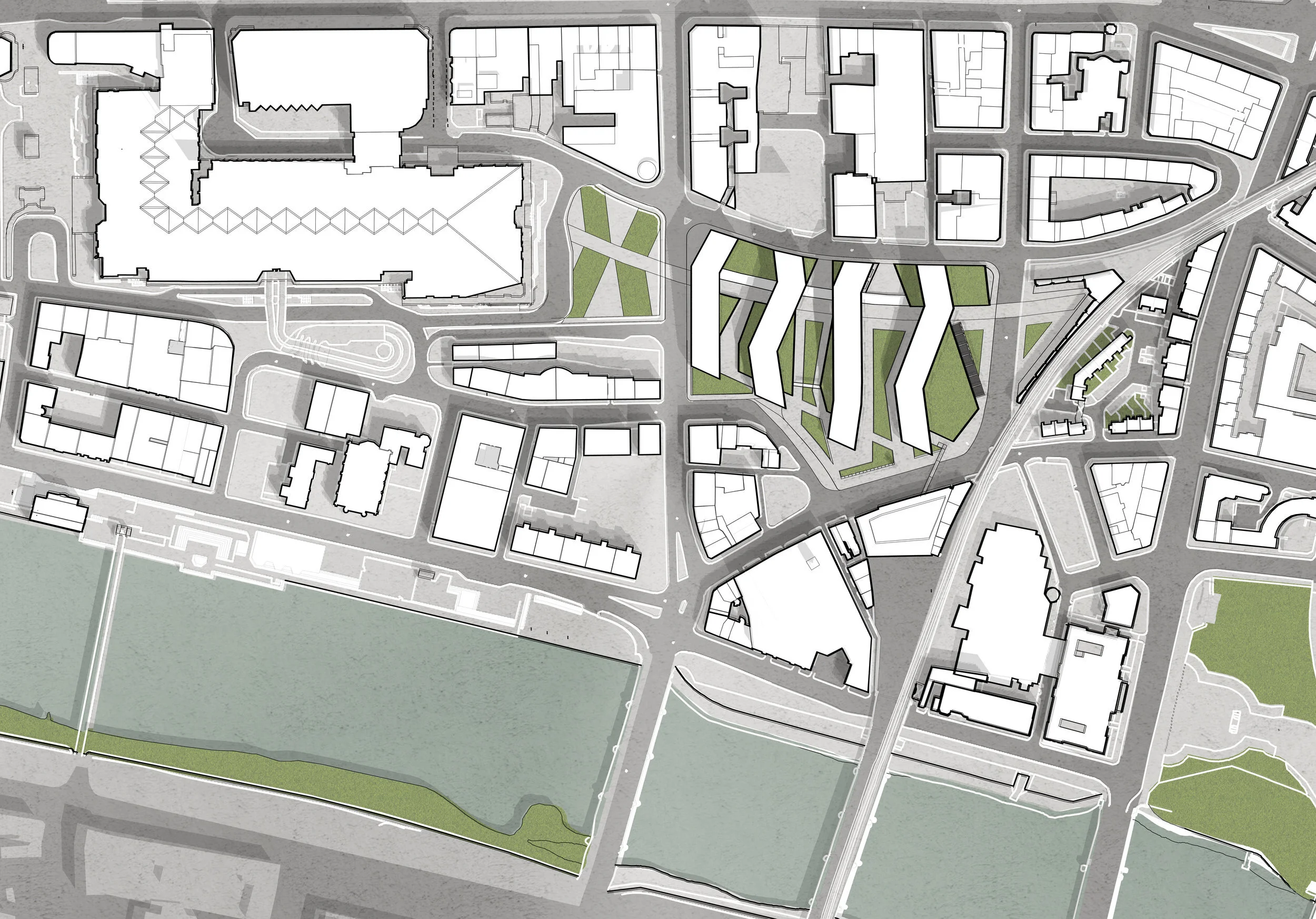 The north/south oriented blocks are designed with flexibility in mind – they could accommodate either residential or commercial activity as the market dictates, or indeed a mixture of both. The flexibility of their size and form means that not only can they be interchangeable while the design develops, but they are able to be adapted for alternative uses in the future.