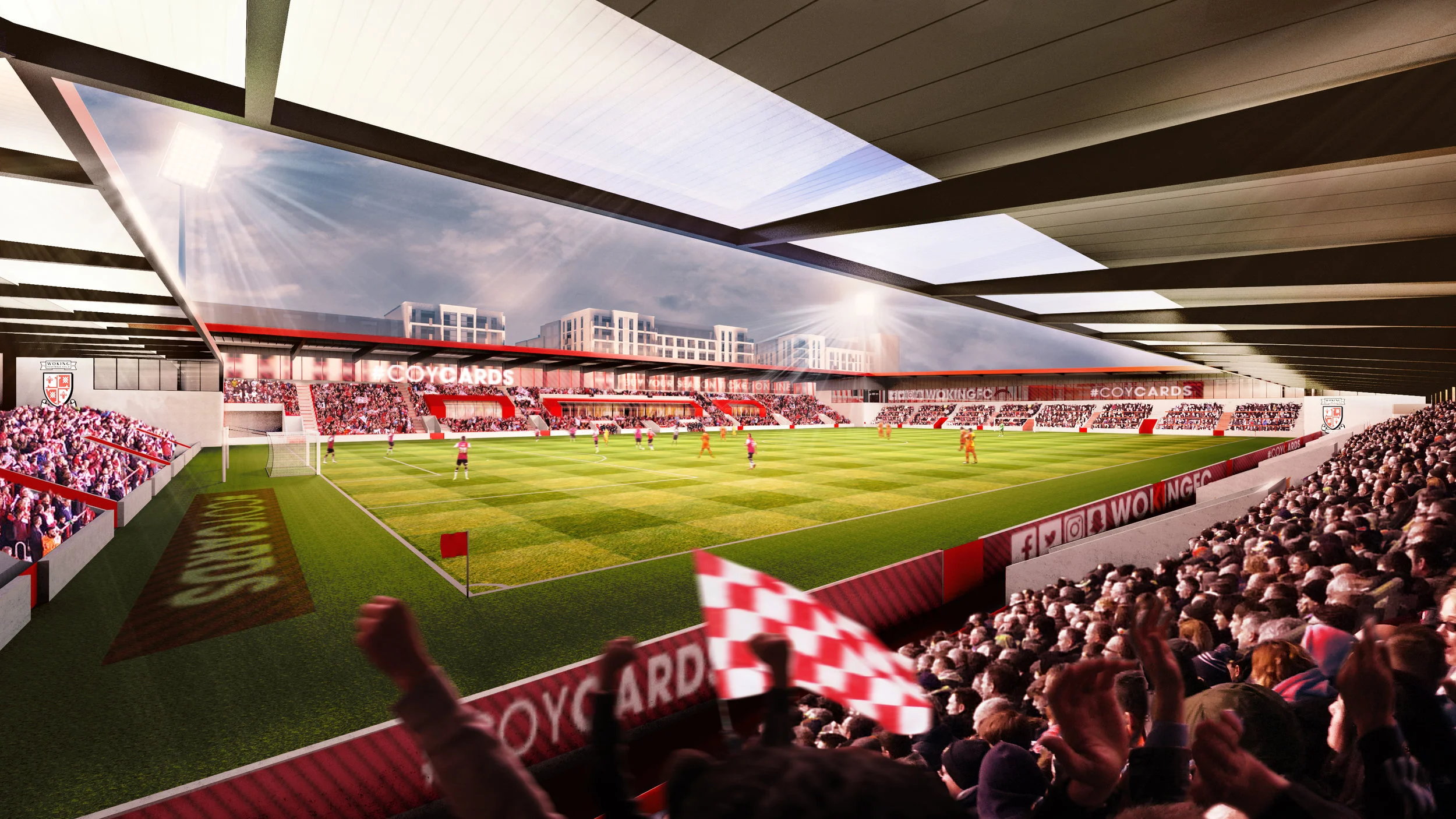 The 10,000 capacity stadium features a fanzone, retail, commercial and community accommodation - as part of a new neighbourhood called Cardinal Court.